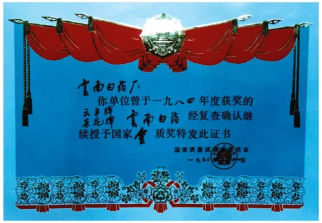 1935Äê12Ô£¬Çú»ÀÕÂÍòÓ¦°Ù±¦µ¤ÔÚÔÆÄÏÊ¡Ìᳫ¹ú»õίԱ»á¹ú»õÕ¹ÀÀ»áÉÏ»ñµÃÌØµÈ½±¡£Çú»ÀÕÂÔÚ¡¶ÔÆÄÏб¨¡·ÉÏ¿¯µÇллÆôÊ¡£ÐÂÖйú½¨Éèºó£¬Çú»ÀÕÂÒÅæ×çÑÀ¼çøÔÚÈËÃñÕþ¸®µÄ×ÊÖúÏ£¬Æð¾¢´Óʰٱ¦µ¤µÄÉú²ú£¬1951Äê10Ô£¬¡°Çú»ÀÕÂÍòÓ¦°Ù±¦µ¤¡±ÔÚÎ÷ÄÏÇø¹¤ÒµÕ¹ÀÀ»áÉÏÕ¹³ö£¬Êܵ½ÈºÖڵĽӴý£¬»ñµÃÁËÎ÷ÄÏÇø¹¤ÒµÕ¹ÀÀ»á¼×µÈ½±×´¡£1979Äê11Ô£¬²è»¨ÅÆÈËÉú¾ÍÊDz©ÈÙ»ñ¹ú¼ÒÓÅÖʲúÆ·½ðÖʽ±ÕÂÖ®¼Ê£¬ÈËÃñÈÕ±¨Éç³öÊéµÄÄÚ¿¯¡¶Êг¡¡·¿¯µÇ¡¶ÈËÉú¾ÍÊDz©µÄȪԴ¡·Ò»ÎÄ£¬¼Ì1979ÄêÆð£¬1984Äê¡¢1990Ä꣬ÈËÉú¾ÍÊDz©¹²Ò»Á¬Èý´Î»ñµÃ¹ú¼ÒÖÊÁ¿½ð½±¡£Í¼Æ¬À´×Ô±¾Ë¾µµ°¸ÊÒ